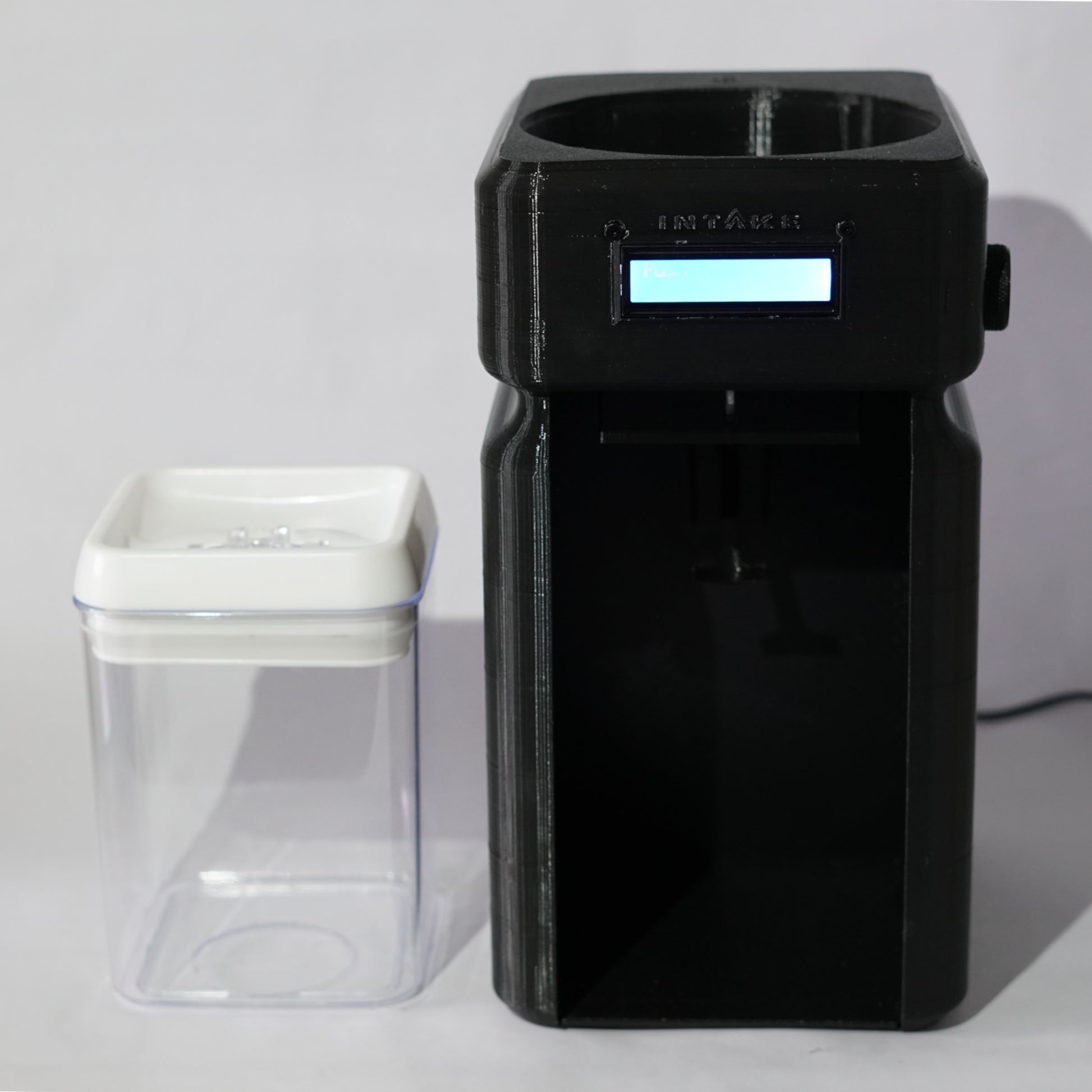 The Intake V1.0 Supplement Dispensing System—a thoughtfully designed engineered solution for fitness enthusiasts and busy individuals seeking a seamless way to incorporate powdered supplements into their daily routine. It is the first of its kind, revolutionising the way humans consume on a daily basis. Effortlessly dispense your preferred supplements instantly, transforming a once tedious task into a moment of simplicity and ease.